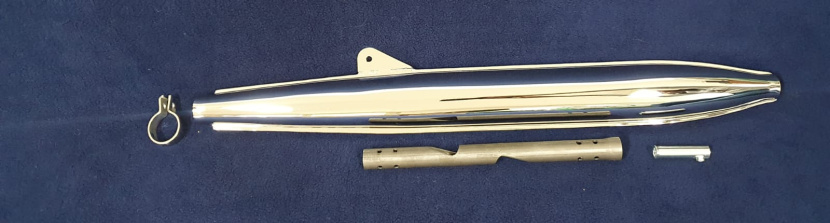Výfuk je vyrobený z dvoch výliskov, z plechu 1 mm. Vo výfuku je tlmič + tlmiaca koncová trubička. Výrobok je brúsený, leštený a následne chrómovaný.